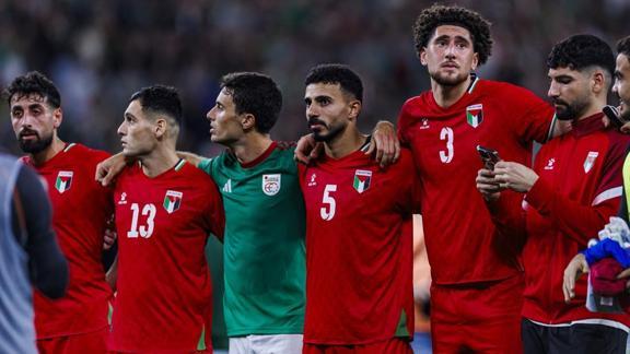 Filistin Milli Takımı'nın sahaya "Soykırımı durdurun" yazılı pankartı taşıyarak çıkması büyük alkış aldı.