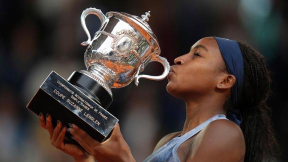 Sezonun ikinci grand slam tenis turnuvası Fransa Açık'ın (Roland Garros) tek kadınlar finalinde Aryna Sabalenka'yı 2-1 (6-7, 6-2, 6-4) yenen Coco Gauff şampiyon oldu.