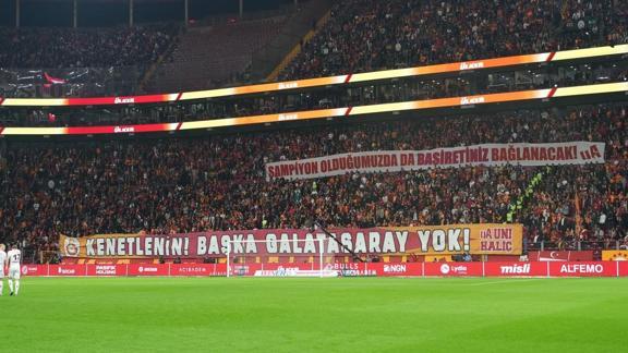Taraftarlar, kale arkası tribünlerinde "Bu takım bu sene söke söke şampiyon." "Kenetlenin başka Galatasaray yok." "Şampiyon olduğumuzda da basiretiniz bağlanacak" ve "Galatasaray tek siz hepiniz" şeklinde pankartlar açtı.