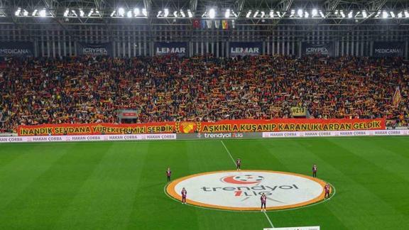 Trendyol 1. Lig'in 29. hafta mücadelesinde Göztepe, bu akşam Erzurumspor FK ile karşı karşıya gelecek. Gürsel Aksel Stadyumu'nda oynanacak müsabaka saat 20.30'da başlayacak. Şampiyonluk yolunda önemli bir karşılaşmaya çıkacak olan sarı-kırmızılılarda taraftarlar üzerine düşeni yaptı ve tüm biletleri satın aldı. Böylece kapalı gişe oynanacak maç öncesinde Göztepe resmi sosyal medya hesaplarından taraftara teşekkür mesajı yayımlandı. Yapılan paylaşımda, "Teşekkürler Şanlı Göztepe Taraftarı Bugün 20.30'da hep birlikte evimiz Gürsel Aksel Stadyumu'ndayız" ifadelerine yer verildi.