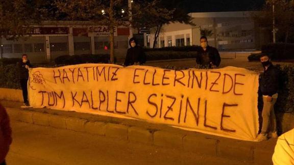 Hastane dışında toplanan taraftarlar açtıkları pankartlar ve yaptıkları tezahüratlarla sağlıkçılara moral aşıladı. "Türkiye sizinle gurur duyuyor", "Sağlık çalışanları gururumuz" sloganları atan taraftarlara sağlık çalışanları da hastane camlarından alkışlarla karşılık verdi.