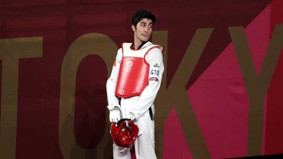 Makuhari Messe A Salonu'nda gerçekleştirilen tekvando müsabakalarında Hakan, çeyrek finalde Büyük Britanyalı Bradly Sinden ile karşı karşıya geldi.