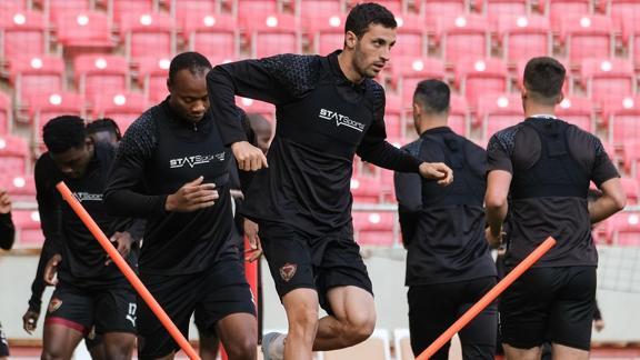 Teknik direktör Volkan Demirel yönetiminde maçın oynanacağı statta yapılan idmanda futbolcular 5'e 2 top kapma, dar alan ve taktik çalıştı.