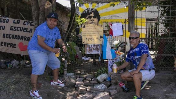 Hayranları, Buenos Aires eyaletine bağlı Villa Fiorito kentinde Maradona'nın doğduğu evin önüne çiçekler, kartlar bırakıyor ve fotoğraf çektiriyor.