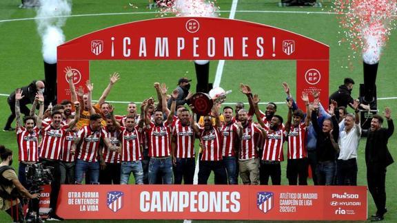 Wanda Metropolitano Stadyumu'nda taraftarlara kapalı olarak düzenlenen törende, İspanya Futbol Federasyonu Başkanı Luis Rubiales, şampiyonluk kupasını, "Koke" lakaplı takım kaptanı Jorge Resurreccion Merodio'ya verdi.