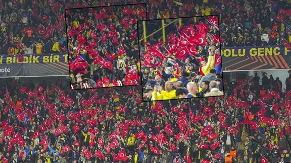 Sarı lacivertli taraftarlar Aston Villa maçında tribünleri tamamen doldururken, ellerindeki Türk bayraklarını sallayarak görsel şölen oluşturdu.