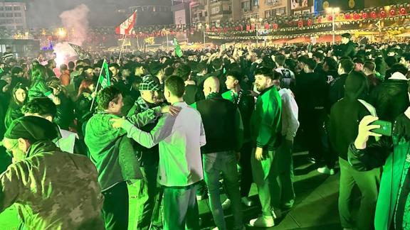 Araçlarıyla kentin birçok noktasında konvoylar oluşturan yeşil-siyahlı taraftarlar, Kocaelispor'un elde ettiği başarıyı doyasıya kutladı.