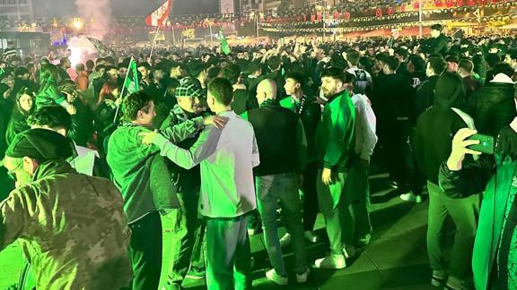 Trendyol Süper Lig'e yükselmesi kesinleşen Kocaelispor'un taraftarları sokaklara döküldü.