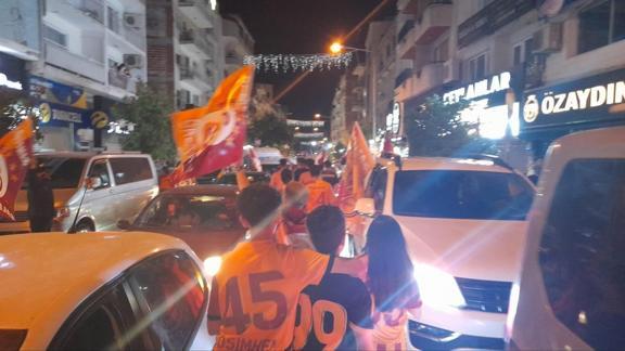 Aydın'ın Kuşadası ilçesinde, Galatasaray'ın Süper Lig'in bitimine 2 hafta kala şampiyonluğunu ilan etmesi coşkuyla kutlandı.