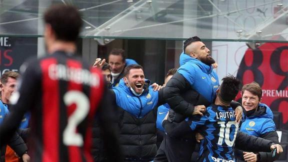Kalan dakikalarda başka gol olmayınca Inter, Milan'ı 3-0 yenerek, şampiyonluk yolun büyük avantaj elde etti.