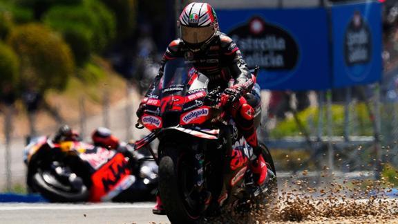 Ducati Lenovo takımından İspanyol pilot Marc Marquez'in ikinci turda yaptığı kaza nedeniyle kırmızı bayrak sallandı ve yarış yeniden başlatıldı.