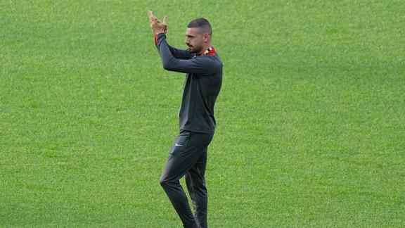 Almanya'da düzenlenen 2024 Avrupa Futbol Şampiyonası (EURO 2024) çeyrek finalinde Türkiye, Hollanda ile karşılaşacağı maç için Berlin Olimpiyat Stadyumu'na geldi. Milli futbolcu Merih Demiral, maç öncesi sahaya çıkarak taraftarları selamladı.