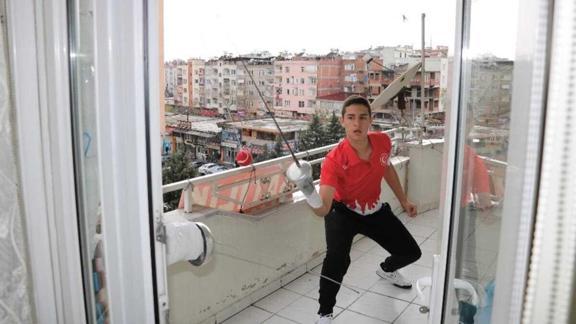Onikişubat ilçesi Hayrullah Mahallesi’ndeki bir apartman dairesinde yaşayan Semih Akküncü (15), koronavirüs önlemleri kapsamında evinden dışarı çıkmıyor. 5 yıl önce başladığı eskrim sayesinde ulusal ve uluslararası turnuvalara katılma imkanı bulan Akküncü, Gençlik ve Spor İl Müdürlüğü bünyesinde Eskrim Spor Kulübü oyuncusu olarak müsabakalara katılıyor.