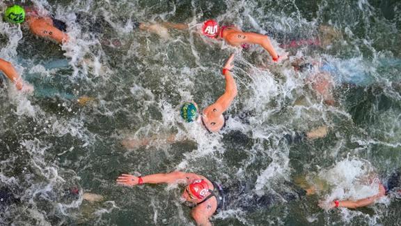 Fransa'nın başkenti Paris'teki Pont Alexandre 3 Köprüsü'nde maraton yüzme erkekler 10 kilometre yarışı yapıldı.