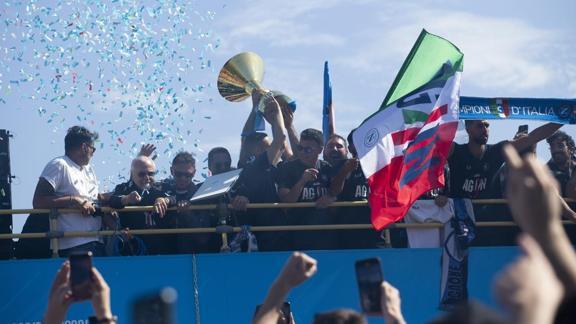Serie A'da 2 yıl aradan sonra yeniden zirveye çıkan Napolili futbolcular ve teknik heyet, feribotla Napoli Limanına gelerek buradan üstü açık otobüse geçti ve kentin önemli ulaşım arterlerinde şampiyonluk kupasıyla turladı.