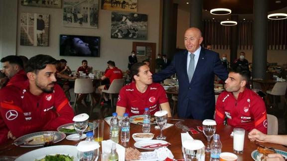 Başkan Özdemir ve TFF yöneticileri, A Milli Takım Teknik Direktörü Şenol Güneş ve oyunculara 24-30 Mart arasında oynanacak 3 maç için başarılar diledi.
