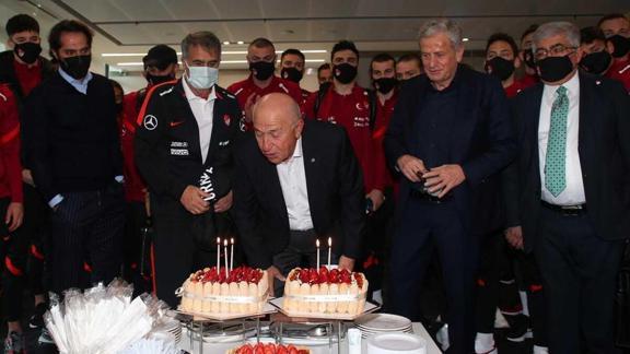İstanbul Havalimanı'nda yapılan doğum günü kutlamasına TFF 1'inci Başkan Vekili Servet Yardımcı, Başkan Vekili Yılmaz Büyükaydın, Yönetim ve İcra Kurulu Üyesi Hamit Altıntop, Yönetim Kurulu Üyeleri Alkın Kalkavan ve İsmail Erdem, A Milli Takım Teknik Direktörü Şenol Güneş ve futbolcular katıldı.