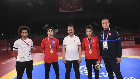 2020 Tokyo Olimpiyat Oyunları'nda ilk madalyalarımız tekvandodan geldi. Milli tekvandocu Hakan Reçber, Bosna Hersekli Nedzad Husic'i mağlup ederek bronz madalyanın sahibi oldu. Milli tekvandocu Hatice Kübra İlgün ise Kimia Alizadeh Zonoozi'yi devirerek bronz madalyaya uzandı. Repesajda Yeni Zelandalı Tom Burns ile karşı karşılaşan ve rakibini eleyen Reçber, madalya karşılaşmasında Bosna Hersekli Nedzad Husic 22-13 mağlup ederek 68 kg'da bronz madalyaya uzandı. 57 kiloda mücadele eden milli tekvandocu Hatice Kübra İlgün ise İranlı Kimia Zenoorin Alizadeh'i 8-6'yla devirerek bronz madalyanın sahibi oldu. Hatice Kübra İlgün, madalya sonrası gözyaşlarını tutamadı. Karşılaşmaları yakından takip eden Gençlik ve Spor Bakanı Muharrem Kasapoğlu, sporcularımızı tebrik etti. Büyük mutluluk yaşandı.