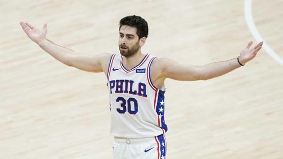 76ers'ta Dwight Howard 18 sayı, 12 ribaunt ile "double-double" yaparken, Tobias Harris 24, Tony Bradley 14 sayı attı.