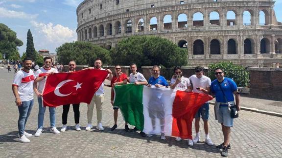 Karşılaşma öncesi Türk taraftarlar erken saatlerden itibaren Roma Olimpiyat Stadı'nın çevresinde toplanmaya başladı. Türkiye'den taraftar gelmesine izin verilmezken, serbest dolaşımdaki Avrupa Birliği ülkelerinden bilet alan gurbetçiler, stat çevresinde heyecanla beklerken milli takıma da destek verdi. Ay-yıldız formalı taraftarlar, Türk bayrakları açıp, söyledikleri tezahürat ve marşlarla milli takıma destek verdi.