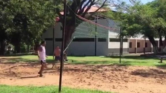 24 gündür cezaevinde yatan Brezilyalı efsane futbolcu, vakit geçirmek için hapishanedeki arkadaşlarıyla top oynuyor.