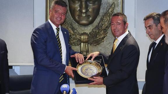 Açıklamaların ardından Fenerbahçe Başkanı Sadettin Saran, eski başkan Ali Koç'a plaket takdim etti.