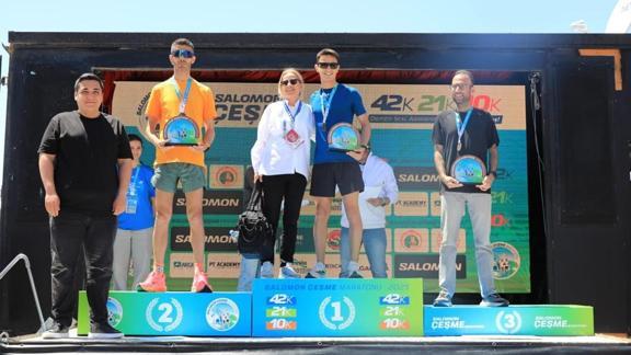 Salomon Çeşme Maratonu'nun 42K'lık parkurda erkeklerde 2:45:17.10'luk derece elde eden Ahmet Bayram kürsünün zirvesinde yer aldı. İkinciliği 2:53:30.50'lik derecesiyle Fransız sporcu François Xavier Martin, üçüncülüğü 2:53:47.69'luk derecesiyle Suat Karoğlu elde etti.