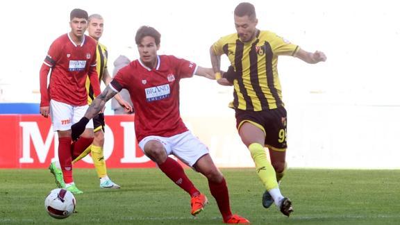 79. dakikada Alaaddin Okumuş'un sağ kanattan ortasında topa iyi yükselen Manaj'ın kafa vuruşunda, meşin yuvarlak üstten auta çıktı.
