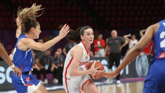 A Milli Kadın Basketbol Takımı, 2025 FIBA Avrupa Şampiyonası A Grubu'ndaki ilk maçında Fransa ile karşı karşıya geldi. Yunanistan'ın Pire kentindeki Barış ve Dostluk Salonu'nda oynanan mücadeleyi 71-69 kaybeden Potanın Perileri, organizasyona tatsız başladı. Son periyoda kadar üstün olan taraf olsak da fi nali iyi yapamadık. İlk periyodu 23-22 önde kapatan milliler, 2. periyotu da 44-36'lık skorla kapattı. Üçüncü periyotta çok zorlanmayan Potanın Perileri, 54-48 ile bitirdi. Ancak Fransa, son periyotta 6 sayıya kadar çıkan farkı eritip, galibiyete uzandı. Potanın Perileri, A Grubu'ndaki ikinci maçında bugün İsviçre ile karşılaşacak. 17.30'daki mücadele TRT Spor'dan naklen yayınlanacak. Milliler, son maçında ise 21 Haziran tarihinde Yunanistan ile oynayacak.