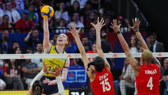 A Milli Kadın Voleybol Takımı, İstanbul'un ev sahipliğinde düzenlenen 2025 Voleybol Milletler Ligi 2. haftasındaki 4. maçında Sinan Erdem Spor Salonu'nda Brezilya ile karşı karşıya geldi. Müsabakayı 18-25, 25-23, 23-25, 15-25'lik setlerle 3-1 kaybeden milliler, ilk yenilgisini yaşadı. Başa baş bir oyuna sahne olan mücadelenin en skorer oyuncusu 26 sayıyla Brezilyalı Ana Cristina olurken, Ay-Yıldızlılar'da Ebrar Karakurt 17 sayı kaydetti. Öte yandan Filenin Sultanları'nın Brezilya ile oynadığı karşılaşmada, FIVB Milletler Ligi rekoru kırıldı. Sinan Erdem'deki mücadeleyi 17 bin 034 seyircinin takip ettiği açıklandı. Karşılaşmayı Gençlik ve Spor Bakanı Osman Aşkın Bak, İstanbul Valisi Davut Gül, Türkiye Voleybol Federasyonu Başkanı Mehmet Akif Üstündağ da takip etti. Milletler Ligi'nin 2. haftasında oynadığı maçlarda 3 galibiyet, 1 mağlubiyet alan Ay-yıldızlılar, 3. haftada 9-13 Temmuz tarihlerinde Hollanda'da mücadele edecek.