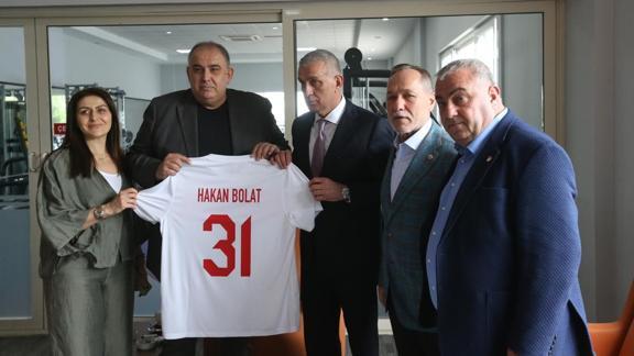 Hacıosmanoğlu, Bolat ile ziyarette yer alan İskenderun Kaymakamı Muhammet Önder ve İskenderun Belediye Başkanı Mehmet Dönmez'e A Milli Futbol Takımı'nın formasını hediye etti.