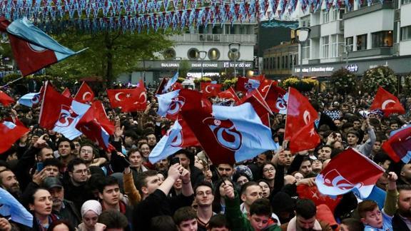 Trabzonsporlu taraftarlar, maç saatine kısa süre kala Trabzon Büyükşehir Belediyesi tarafından 15 Temmuz Şehitler ve Hürriyet Parkı'na kurulan dev ekran önünde bir araya geldi.