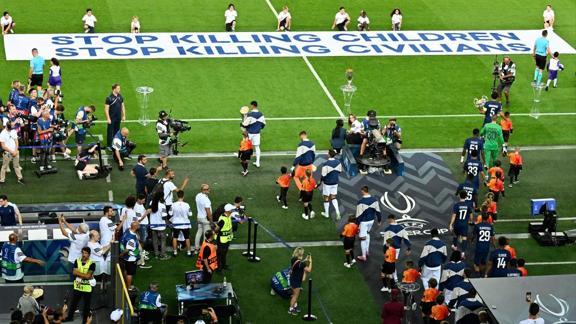 UEFA, İsrail soykırımına daha fazla sessiz kalamadı. Son dönemde futbol sahalarında İsrail'in soykırımına karşı büyüyen tepkiler, UEFA'yı da pozisyon almaya zorladı. Gazze'de şehit edilen Filistinli Futbolcu Pele için taziye mesajı yayınlayan UEFA, İsrail'in adını anmadığı için Liverpool'un yıldız oyuncusu Salah'ın gazabına uğramıştı. Salah, "Peki Pele'yi kim öldürdü" diye UEFA'ya tepki koymuştu. Avrupa Kupaları'nda mücadele eden takımlarımız F.Bahçe, Beşiktaş ve Başakşehir'den de soykırıma isyan vardı. F.Bahçe maç öncesi ısınmaya, "İnsanlığa karşı işlenen suçları durdurun" yazan siyah bir tişörtle çıktı. Aynı tepkiyi Beşiktaş ve Başakşehir de yineledi. Soykırıma sessiz kaldığı için yoğun eleştiriler alan UEFA da artık daha fazla susamadı. İtalya'da oynanan Süper Kupa finaline Gazze'de anne ve babasını katledilen 9 yaşındaki Mohamed ile ağır yaralanıp İtalya'da tedavi gören 12 yaşındaki Tala da davet edildi. İki çocuk ödül törenine UEFA Başkanı Ceferin'le birlikte çıktı. Çocukların yaşadıkları acıları unutup, futbolla yaşadıkları mutluluk yüzlerine yansıdı. UEFA maçtan önce de, "Çocuk ölümlerini durdurun. Sivil ölümlerini durdurun" pankartı açtı. Bu gelişmeler dünyada büyük yankı uyandırdı.
