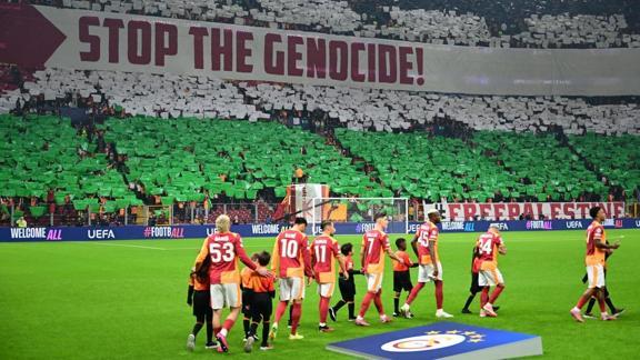 UEFA Şampiyonlar Ligi'nde Galatasaray ile Bodo/Glimt arasında oynanan maç öncesinde sarı-kırmızılı taraftarlar, Filistin'de yaşanan insanlık dramına dikkat çekmek amacıyla tribünlerde dev bir Filistin bayraklı koreografi açtı. Bayrağın üzerinde İngilizce "Stop the genocide" (Soykırımı durdurun) yazısı yer aldı.