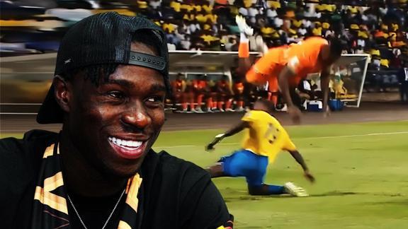 Dünya Kupası Afrika Elemeleri F Grubu'nda 0-0 biten Gabon - Fildişi Sahilleri maçında rakip sol bek Ekomie'nin çok sert müdahalesinden kendini kaçırmaya çalışan Singo'nun ayakları yerden kesildi. Takla atan başarılı sağ bek, yere kontrollü şekilde düşmeyi başardı.