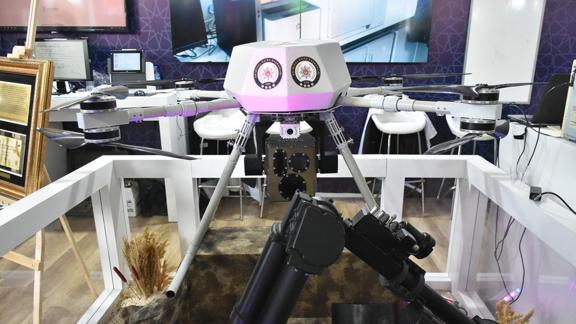 Lazer silahlı dronu "Eren", Samsun'da düzenlenen dünyanın en büyük havacılık, uzay ve teknoloji festivali TEKNOFEST'teki İçişleri Bakanlığı standında sergileniyor.