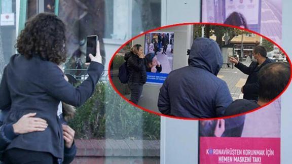 Trabzon'da yapay zeka ekranı, otobüs durağında maske takmayanları yarıyor. Uyarıyı gören vatandaşlar, "Birden bire ödüm koptu, hemen maskemi yukarı çektim." dedi.