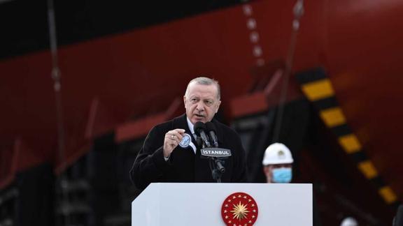 Başkan Recep Tayyip Erdoğan, İstanbul Tersane Komutanlığında, MİLGEM Projesi'nin 5'inci gemisi İstanbul (F-515) Fırkateyni'nin Denize İniş ve Pakistan MİLGEM Korvet Projesi 3'üncü Gemi İlk Kaynak törenlerinde konuştu.