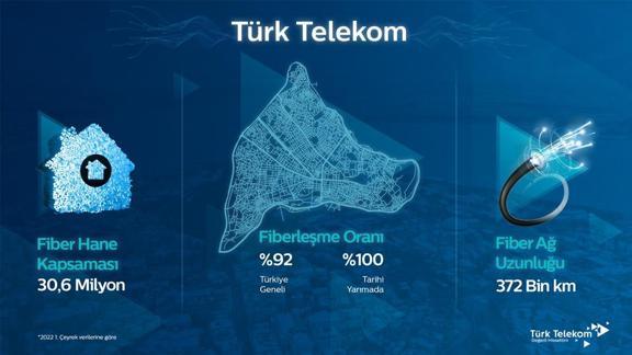 Türkiye'nin dijital dönüşümünün öncüsü Türk Telekom, fiber yatırımları önceliklendirerek dijitalleşmeyi hızlandırmak, ülkeyi 5G ve yeni nesil teknolojilere hazırlamak ve internet penetrasyonunu artırmak amacıyla çalışmalarını hız kesmeden sürdürüyor. Türkiye'nin 81 ilini uçtan uca fiberle donatan Türk Telekom, altyapıdaki fiberleşme oranını 2022'in 1. çeyreğinde yüzde 92 seviyesine ulaştırırken, şimdi de İstanbul'da Tarihi Yarımada'nın fiber dönüşümünü tamamladı.