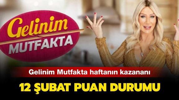 Gelinim Mutfakta 12 Şubat puan durumu bugün belli oldu. Ardından Gelinim Mutfakta haftanın kazanı ve elenen ismi açıklandı. Gündüz kuşağı yemek yarışmasında kıyasıya mücadele devam ediyor. 4 gelin adayından biri Gelinim Mutfakta haftanın kazanı olurken bir diğer isim elenecek. Seda Sayan'ın sunumuyla gerçekleşen yarışma programında Gelinim Mutfakta 12 Şubat haftanın birincisi kim oldu? Gelinim Mutfakta kim elendi, puan durumu nasıl?