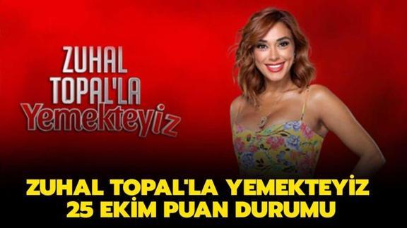 Zuhal Topal'la Yemekteyiz 25 Ekim puan durumu için heyecanlı bekleyiş sona erdi. Zuhal Topal'ın sunduğu yarışma programında her gün yarışmacılar en lezzetli yemekleri yapmaya çalışacak. Peki, Zuhal Topal'la Yemekteyiz 25 Ekim puan durumu nasıl? Zuhal Topal'la Yemekteyiz pazartesi puanları açıklandı mı?