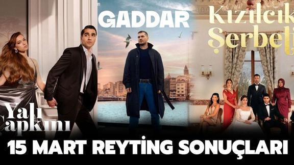 Cuma akşamı birbirinden başarılı diziler arasında reyting savaşı yaşanıyor. İlk sezonu ile reyting rekorları kıran Yalı Çapkını, ikinci sezonda Kızılcık Şerbeti'nden gelen atak ile ikinci sıraya düşmüştü. Geçtiğimiz hafta sonuçlarına göre, Kızılcık Şerbeti 3 kategoride de 1. oldu. Yalı Çapkını ise Total'de 2., AB'de 3. ve ABC'de 5. sıraya yerleşti. Now Tv'nin iddialı dizisi Gaddar Total'de 5., AB ve ABC'de 4. oldu. Peki, 15 Mart reyting sonuçları nasıl? Kızılcık Şerbeti, Gaddar, Yalı Çapkını reytingleri nasıl? Zirvede hangi dizi var?