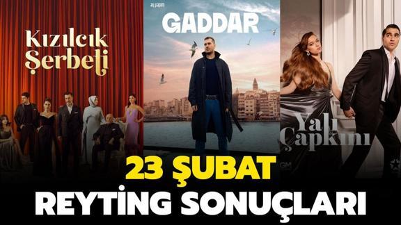 23 Şubat reyting sonuçları merak ediliyor. Dün akşam Star Tv'de Yalı Çapkını, Show Tv'de Kızılcık Şerbeti, Kanal D'de Arka Sokaklar, Now Tv'de ise Gaddar dizilerinin yeni bölümleri ekrana geldi. Kara Ağaç Destanı dizisi ise ilk bölümü ile izleycii karşısına çıktı. Bu iddialı yapımlardan hangisinin reytinglerde birinci olacağı merakla araştırılıyor. İşte Yalı Çapkını, Kızılcık Şerbeti, Kar Ağaç Destanı, Gaddar reyting sıralaması...
