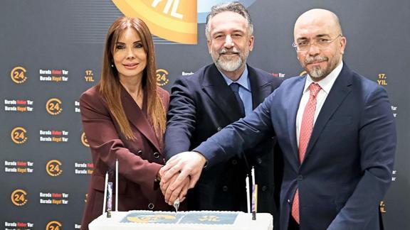 TürkMedya İcra Kurulu Başkanı Murat Çiçek, 24 TV Genel Yayın Yönetmeni Ömer Özkök ve Reklam Grup Başkanı Tülay Mutlu Dölen pastayı birlikte kesti.