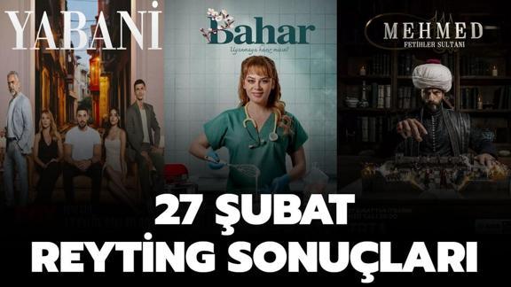 27 Şubat Bahar, Yabani, Mehmed: Fetihler Sultanı reyting listesi merak ediliyor. Reytinglerde üst sıralarda yer alan yapımlar yayın hayatına devam ederken, başarı gösteremeyen dizi ve programlar kısa zamanda yayından kaldırılıyor. Dün akşam yeni dizilerle birlikte birbirinden iddialı diziler izleyicilerle buluştu. İşte dünün reyting sıralaması...