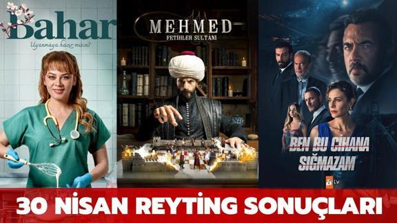 30 Nisan reyting sonuçları izleyiciler tarafından merak ediliyor. 30 Nisan Salı yayın akışına göre, Mehmed: Fetihler Sultanı, Ben Bu Cihana Sığmazam, Bahar dizilerinin; Survivor yarışmasının yeni bölümleri ekrana gelirken, diğer kanallarda ise birbirinden eğlenceli ve sürükleyici filmler yayınlanıyor. 30 Nisan reyting sonuçları açıklandı. Buna göre; Bahar, Mehmed: Fetihler Sultanı, Ben Bu Cihana Sığmazam reyting sıralaması nasıl?