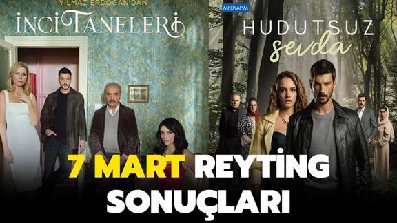 Sevilen diziler Hudutsuz Sevda, Aldatmak, Sakla Beni, Kül Masalı ve İnci Taneleri'nin yeni bölümleri izleyici karşısına çıktı. 6. haftadır reytinglerde kimselere kaptırmayan İnci Taneleri'nin 7. haftasında da alacağı reytingler merak konusu oldu. Geçtiğimiz hafta Atv'de önemli maç Galatasaray Vavacars Fatih Karagümrük Ziraat Türkiye Kupası karşılaşması ekrana gelmiş ancak 2. olmuştu. Peki, 7 Mart Survivor, Hudutsuz Sevda, İnci Taneleri reyting listesi belli nasıl?