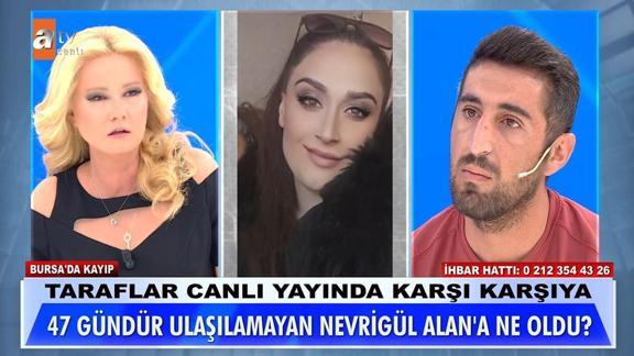 ATV ekranlarının başarılı programı 'Müge Anlı ile Tatlı Sert'te aranan isimlerden biri olan Nevrigül Alan'ın cansız bedeni bulundu. Müge Anlı'da bu hafta Bursa'da 2 Eylül günü aniden ortadan kaybolan 22 yaşındaki 2 çocuk annesi Nevrigül Alan'ı aramaya ailesi geldi.