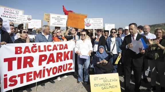 Mahalle sakinleri, 52 dönüm arazi üzerine kurulan tır parkında bir araya gelerek basın açıklaması yaptı.