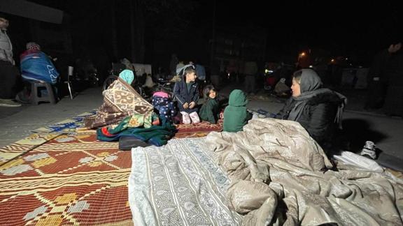 AFAD ve Türk Kızılay ekipleri, sokakta bekleyenlere battaniye ve sıcak çorba dağıtıyor.